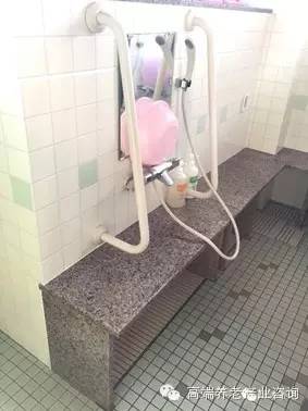 而那些有行动障碍的老人怎么办呢?没关系,养老院里为他们准备的轮椅可以直接推至淋浴间,老人可以坐在轮椅上进行冲淋。
