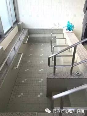 因为水的浮力影响,老人在泡澡池中很难保持稳定,所以非常容易摔倒。许多养老机构出于安全考虑就放弃了泡澡池。但是这种因噎废食的做法没有发生在这里。这家养老机构的设计兼顾了老人的泡澡需求和安全问题。几道扶手将泡澡池隔成五个卡位,老人坐在泡澡池里可以手握扶手来保持平衡,同时也会有专门的介护人员负责陪护,这样就保证了老人安全泡澡。