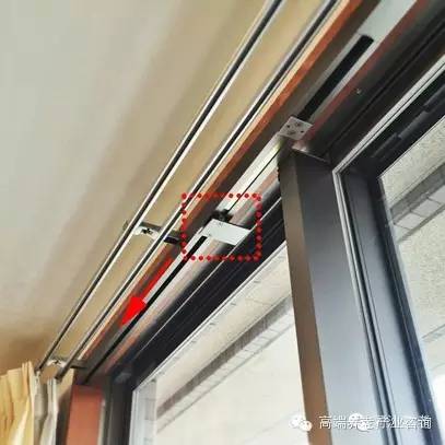 为了防止三楼的失智老人误开窗户失足摔下楼,三楼每个房间的窗户都只能打开到15cm宽,图中红色圈出的部件就是用来阻挡窗户打开的。但是,当房间中的烟雾报警器接收到烟雾感应时,原先用来阻挡窗户打开的部件会自动沿轨道滑至最左边,从而保证危机时刻老人和护理人员仍然可以通过窗户逃生。