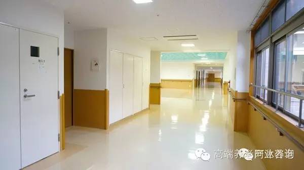 因为居住在三楼的都是失智老人,因此安全问题尤其重要。上图向我们展示了这家养老机构在走廊安全方面的标配。
